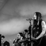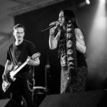 Um 17:00 ging der musikalische Teil des Events los und schon einige Zeit vorher standen die Fans voller Erwartung am Absperrgitter um die vier Musiker auf der Bühne zu sehen. Ein Beweis dafür, wie sehr La Scaltra bei den Fans ankommt, denn sehr gerne bleiben die ersten Meter bei Openern gerne mal frei. Hier nicht, ganz im Gegenteil und nach der Eröffnungsansprache, erklommen die Vier auch zügig die Bühne um ihren ersten Song zu spielen. Schon der erste Song mit seiner düsteren und mystischen Aura ließ den Funken in Bruchteilen auf die Fans überspringen, die mit sangen, tanzten und strahlenden Gesichtern Richtung Bühne blickten.
