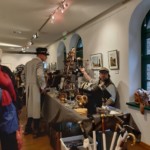 Es waren auch viele Besucher in den Nachtigallräumen, die einfach mal stöbern und wahrscheinlich den sagenumwobenen Aether schnuppern wollten. Und meist ungewollt dann auch fündig wurden oder den ein oder anderen Kinderwunsch erfüllen durften: auch kleine, junge Zeitreisende wollen schließlich mit irgendeinem kleinen Gegenstand nach Hause gehen, der die Phantasie beflügelt. Und davon gab es reichlich Auswahl: von Goggles über viele wunderschöne antike Mechanikutensilien, hin über Messingferngläser und diverse Kleidungsstücke der viktorianischen Epochen.
