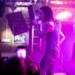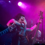 Energisch, nach vorn preschend, gab Sänger Julian direkt von der ersten Sekunde an alles, was Stimme und Körper hergaben. Leicht theatralisch tänzelnd, dann wieder mit großen Gesten der unterschwelligen Dekadenz, nutze er den Raum der Bühne und verkörperte den Passus „a stroll among the stars in the dark of night“ – und das Publikum begab sich sehr gerne in die Hände der Band, um an diesem Abend im Kulttempel zu Oberhausen, sich zwischen den Sternen im Dunkel der Nacht zu verlieren. Lacrimas Profundere lieferten dazu den passenden Soundtrack. Ihre Mischung aus Metal, Dark Rock und gutem altem Gothic Rock überzeugten. Der Sound war nicht immer ganz so klar, teilweise erschlugen die scheppernd blechern klingenden Hi-Hats der Drums die Geräuschkulisse, aber das tat der Partybereitschaft des Publikums keinen Abbruch.