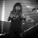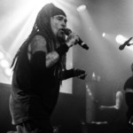 Es war soweit, 3Teeth aus Los Angeles hatten den Saal mit ihrem Programm auf volle Touren gebracht, als es erneut im Tempel dunkel wurde. Al´s Männer kamen auf die Bühne und rollten mit donnerndem Sound den roten Teppich aus für das Idol aus Chicago. Direkt mit dem ersten Song verwandelte sich der Kulttempel in einen Kessel aus infernalisch lauter Musik, einer wilden Bühnenshow und Gästen, die diesem Besuch ebenso entgegengefiebert haben wie wir. Al predigte aber nicht einfach Song für Song herunter, nein er schaute sich während des ganzen Konzertes ebenso die Besucher an, suchte Blickkontakt und gab jedem Anwesendem das Gefühl ein spezieller Gast von Ministry zu sein. Natürlich ging es auch um das neue „AmeriKKant“ Album, das erneut den Finger in die Wunden der Gesellschaft legt und seit seiner Veröffentlichung wie eine Bombe eingeschlagen ist. Aber nicht nur Al als Frontmann gab alles, auch bei seinen Begleitern John, Sin, Cesar, Paul und Derek bemerkte man den Spaß, die Energie und den Willen den Fans etwas Großartiges an diesem Abend zu bieten. Es war alles wie aus einem Guss, hier passte einfach Alles zusammen, ob es die wehenden Fahnen auf der Bühne waren oder die eingespielten Videos auf der Leinwand. Ein Erlebnis wie aus einer anderen Welt, ein absolutes Highlight und unvergessener Moment in unserem Leben. Ein Wunsch, dem wir schon seit 1992 entgegenfieberten ging endlich in Erfüllung.